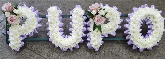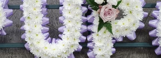 A lovely personalised tribute, ribbon edge can be in any colour as can the sprays