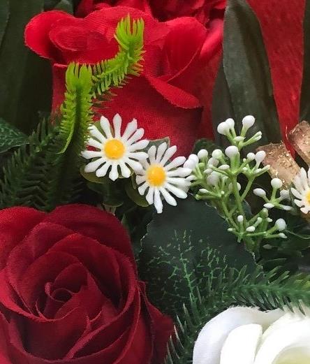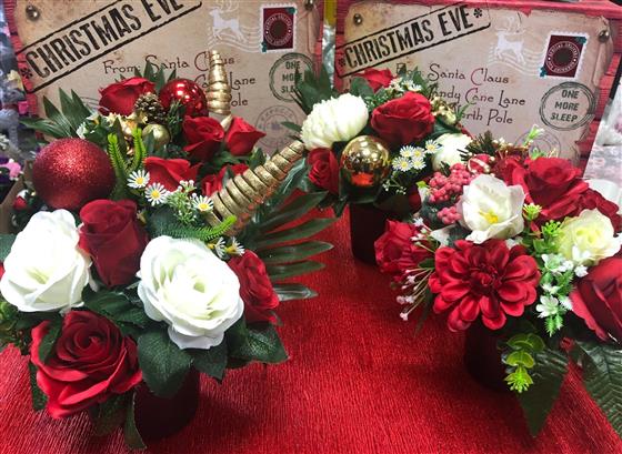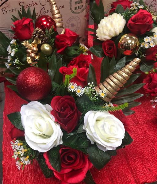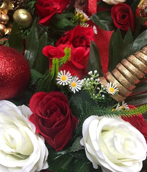 Festive cemetery pot, can be filled with any colour silk flowers, includes Christmas bauble or similar