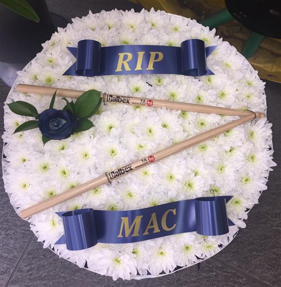 A special floral tribute for a drummer, snare drum can be made in any colour